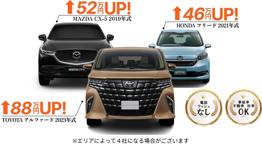 • "他の一括査定サイトより10万円も高く買い取ってもらって嬉しかった。"