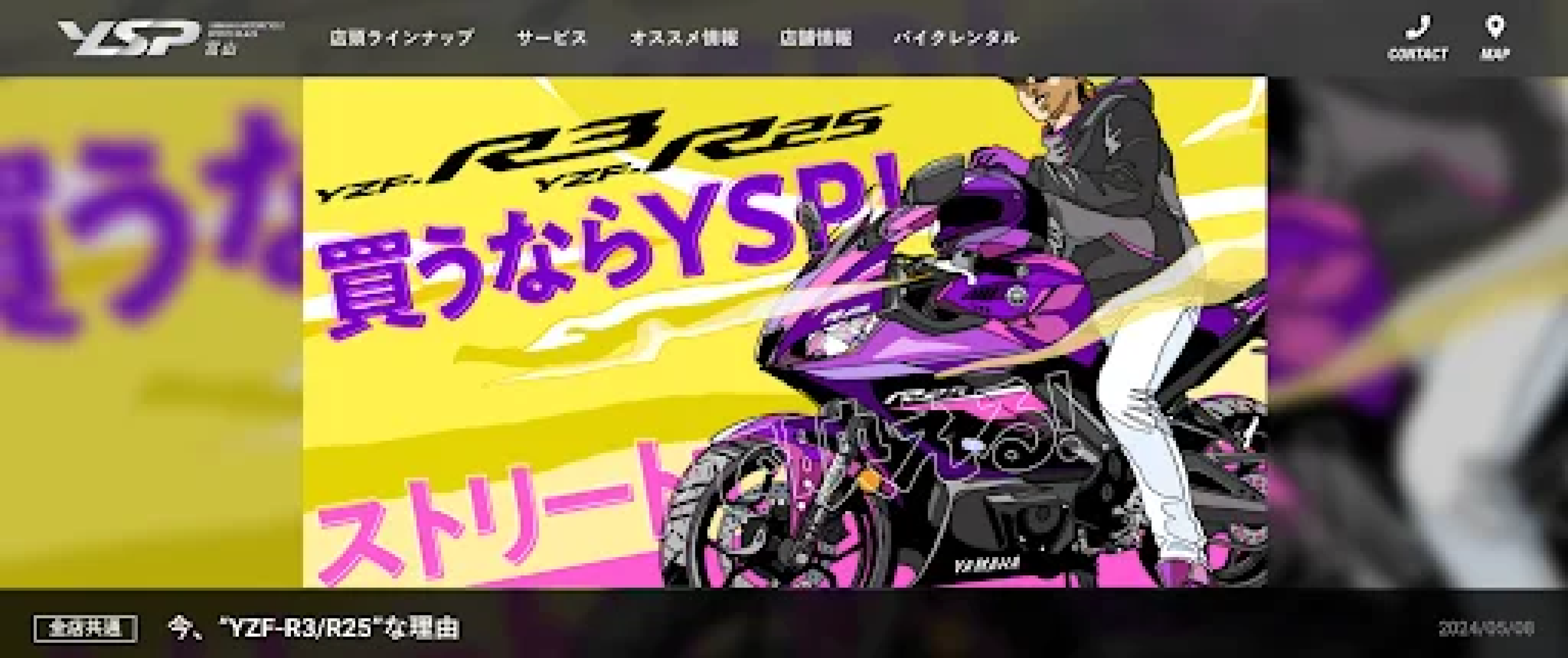 YSPは、ヤマハモーターサイクルスポーツプラザの頭文字を取った名称で、YAMAHAの正規ディーラーとなっています。