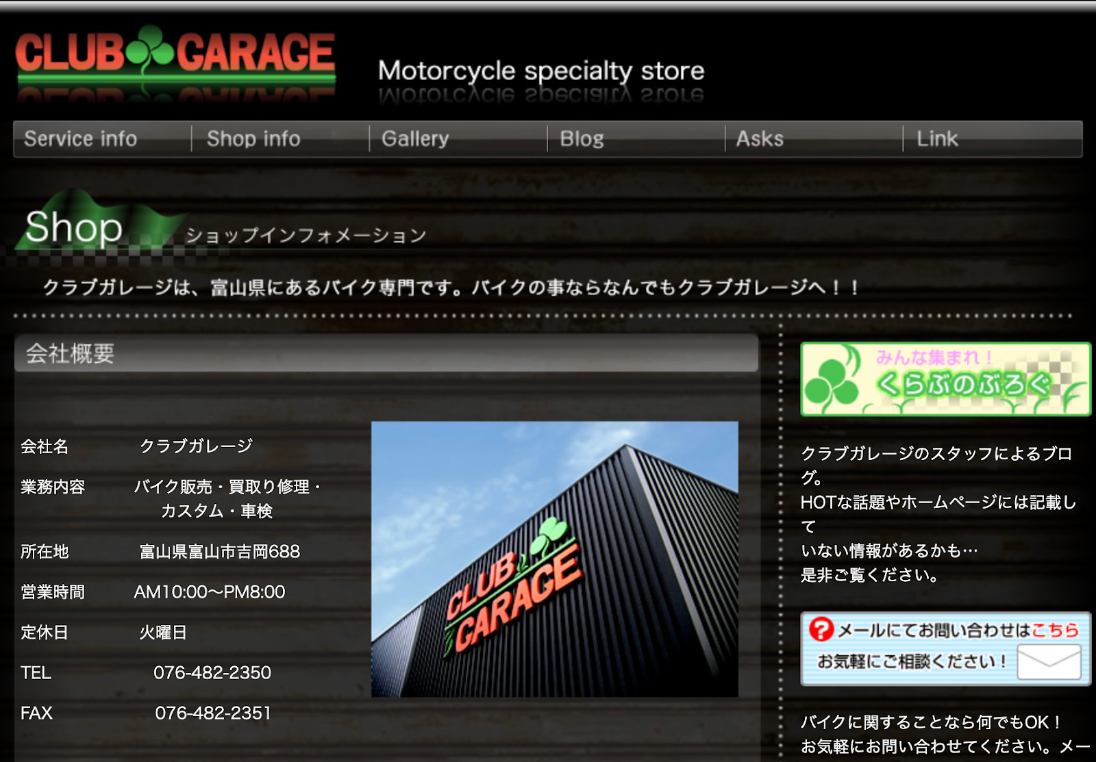クラブ・ガレージは、富山県富山市に店舗を展開するバイク買取業者です。